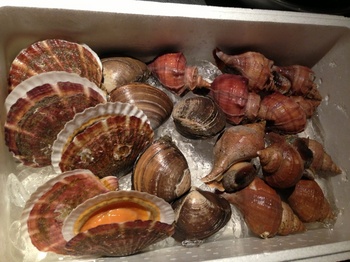 I am a BIG fan of all kinds of shell fish. であります。昨日の夕方ロータス地階でMr.Uichiと出張前の打ち合わせ中。そろそろ帰るぞって時になって、ピンクの壁に囲まれた客席には些か場違いな、ちょっと薄汚れた感じがそいつの長旅を物語っている風貌の、とにかく大きな発砲スチロールボックスが運び込まれ、、北海道から届きました〜、と、いざ開封されたそのボックスの中には、なんと大量の貝がっ。しかもみんな活きてるーーっ。OMG!!!これらは今後のロータスのメニューに登場するらしいです。明日からニューヨークに飛び立つ私とはすれ違い。良いもんっ。向こうではこの子達が私を待っているさっ。すれ違いと言えば、いつもオフィスで隣の机に座っているアートディレクター、とんちゃんともまさかのニューヨークですれ違い。私が帰る翌日に、彼女がニューヨーク入り。(地下(ロータス)だって言うのに、太陽が眩しすぎてサングラスをしてモーニングコーヒーの彼女。)この夏はすれ違いにご注意を、って事ですかね。と言う事で、明日からmy hometown,ニューヨーク♡von voyage for…