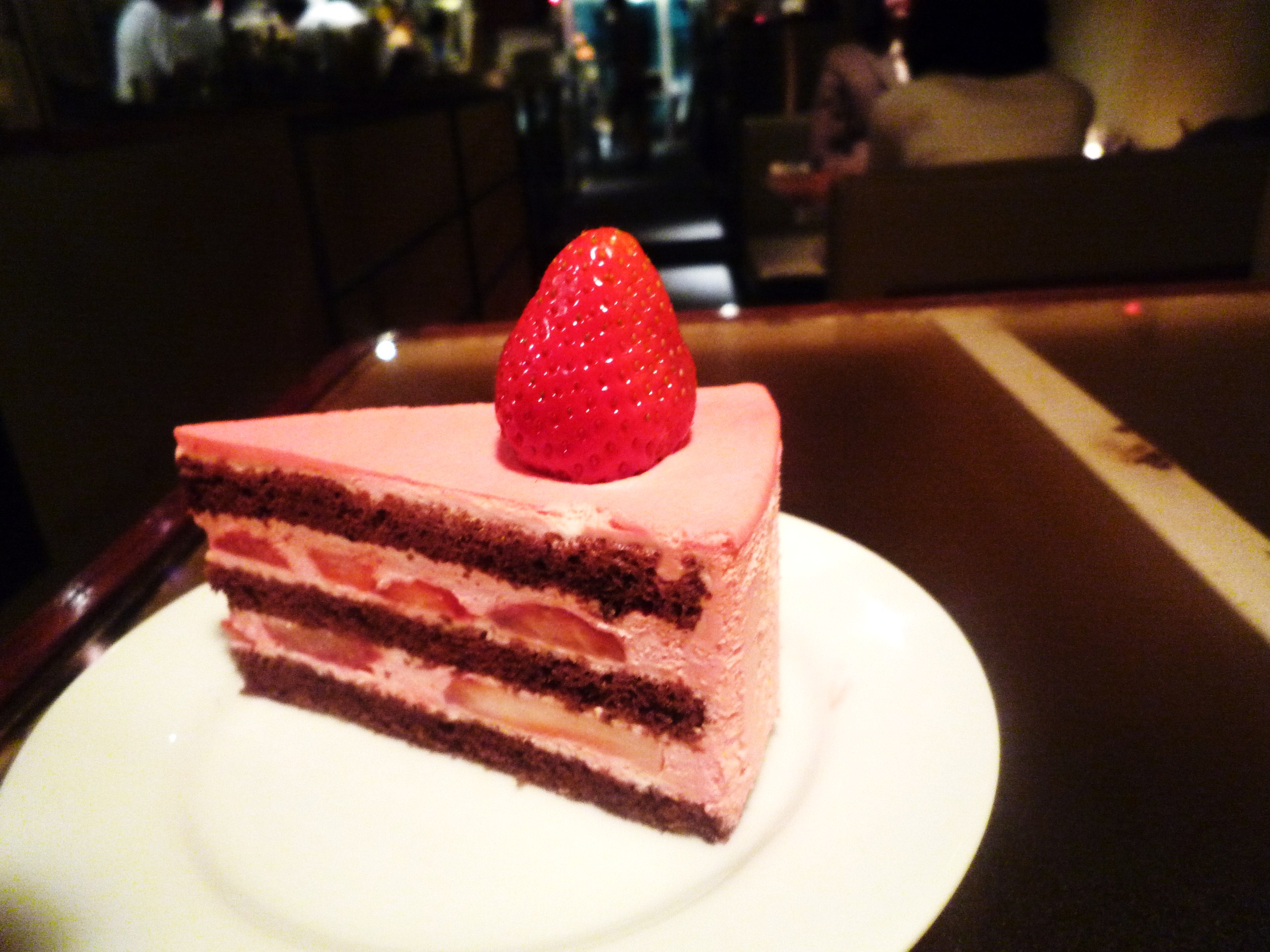 毎日ショーケースから「Look at me! 」と訴えているピンクのチョコショートケーキ。