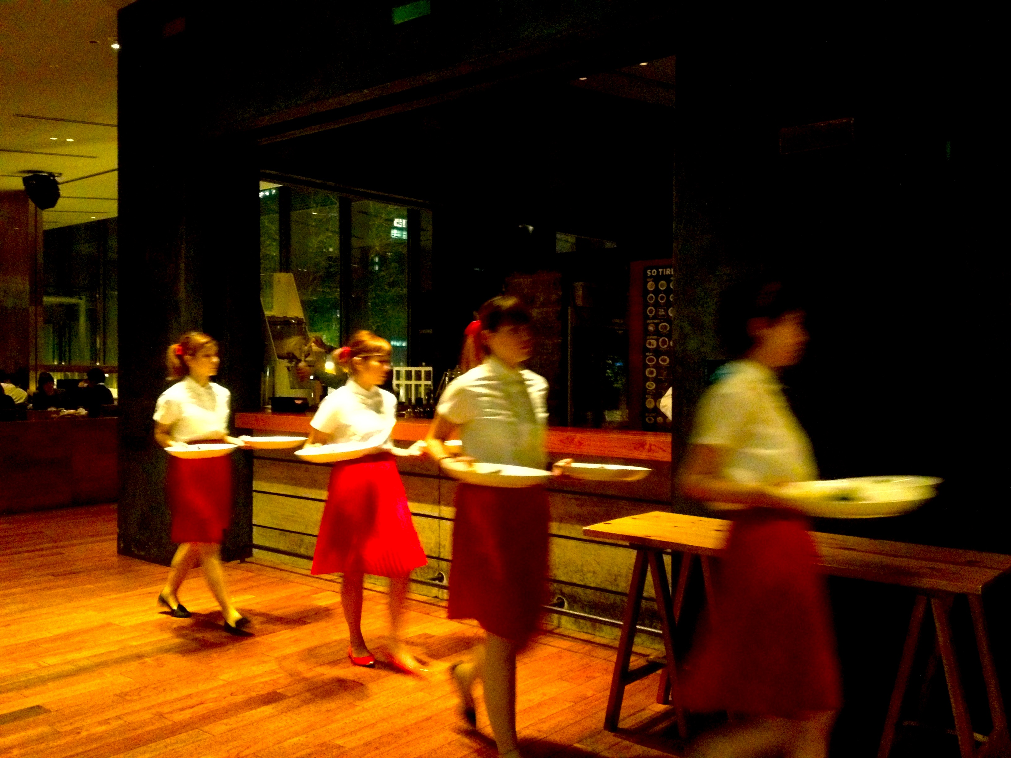 ヌーベルシノワをテーマにした料理と1直線に並んだテーブルにはホセの豪華な友人たち、