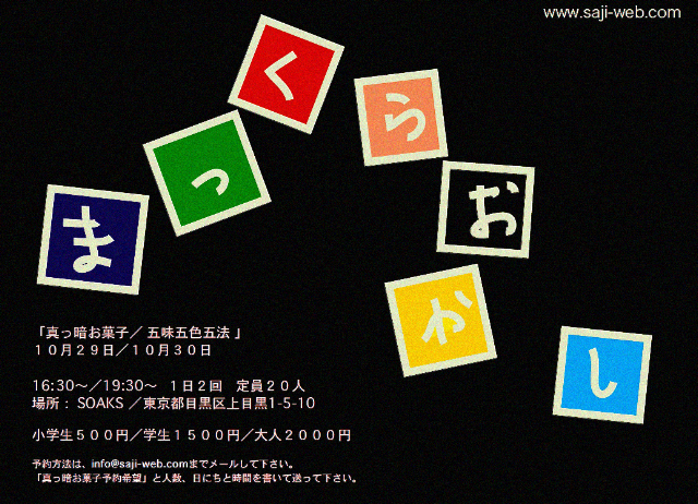 10/29(土)、30(日)の2日間、中目黒SOAKSにて『真っ暗お菓子/五味五色五法』を開催!
