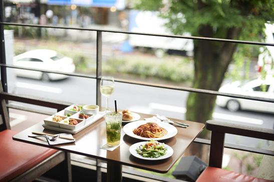 外に出て太陽の下でランチやティータイム。