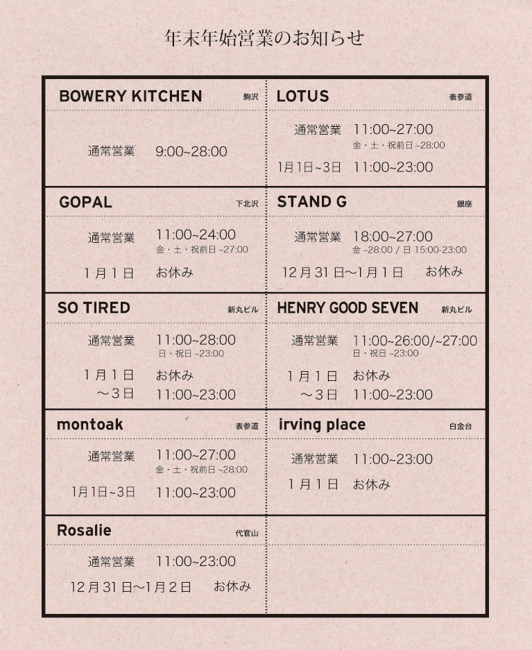 SO TIRED / HENRY GOOD 7 閉店のお知らせ