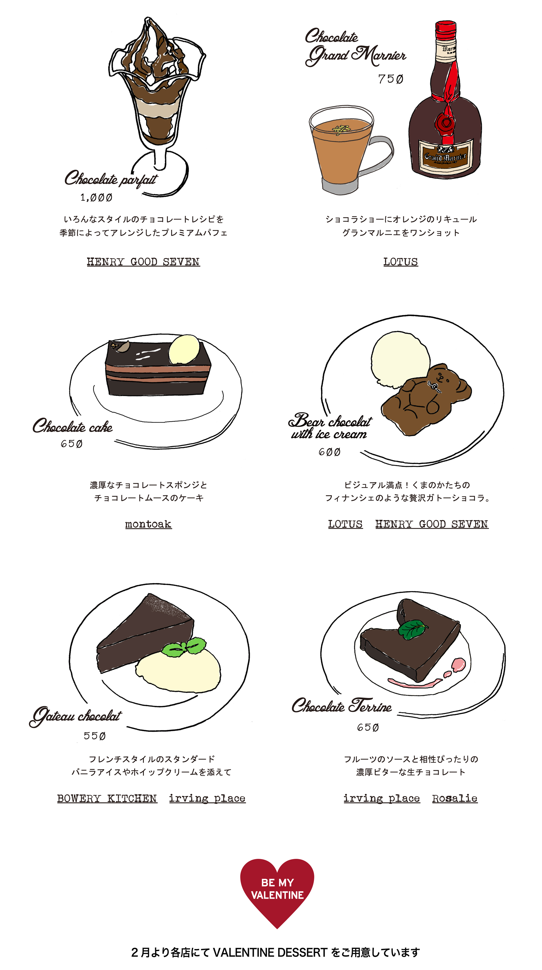 お店で人気の定番デザートやホットリカーをご紹介します。