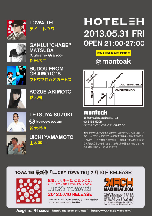 TEI TOWA×鈴木哲也×山本宇一主催のパーティ『HOTEL H』。