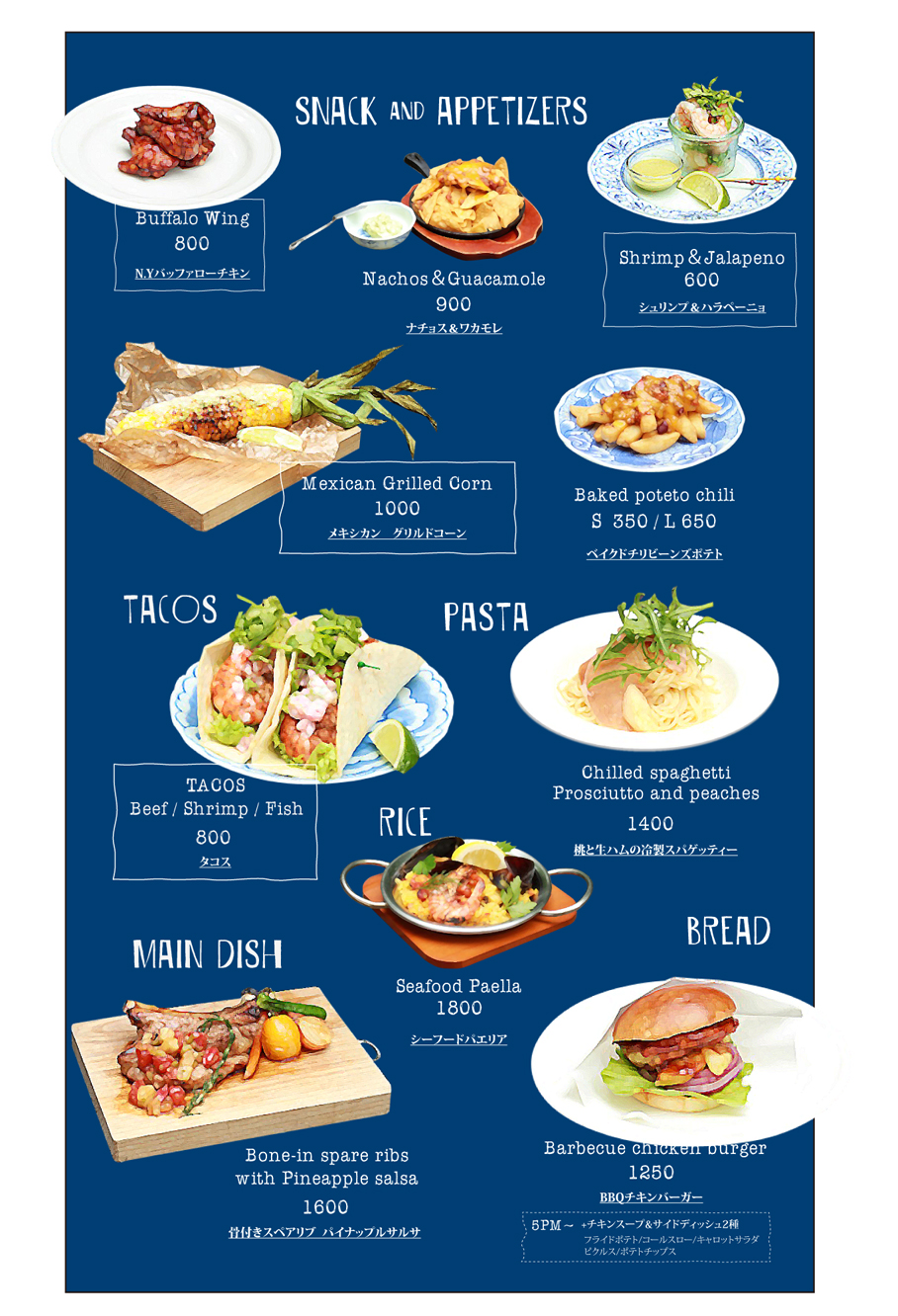 肉料理が夏のリゾートバージョンでラインナップ。