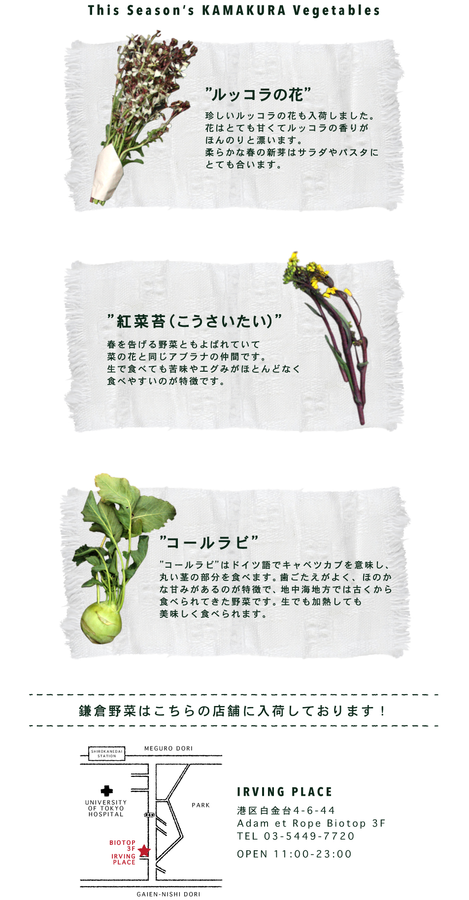 太陽光をたっぷり浴びて育った鎌倉野菜は 種類豊富で鮮度が良いのが特徴です。契約農家から直送で仕入れた採れたての旬の新鮮野菜をお試しください!